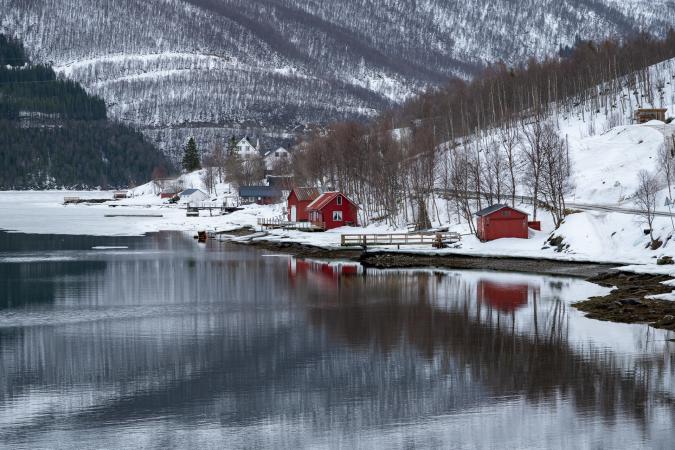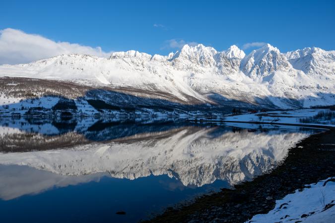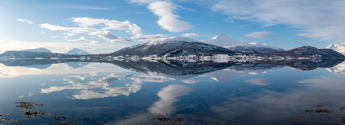 On passe Nordkjosbotn et plus loin en prenant la petite route Seljelvnesveien, on tombe sur un super spot avec de superbes reflets.