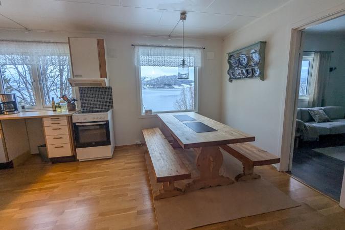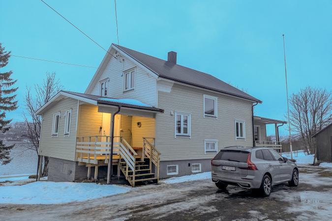 On va faire des courses pour deux jours au Spar habituel car le coffre est plein avec les bagages. On est un peu serré à trois derrière. A 15h20, on roule en direction de la maison à Indre Malangseidet à 1h30 au Sud de Tromso le long du fjord Balsfjord. On arrive à la maison vers 16h30.