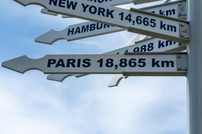Au bout du sentier, il y a un petit phare et un panneau indique la distance vers l’Equateur et le Pôle Sud.