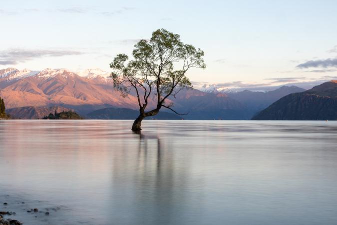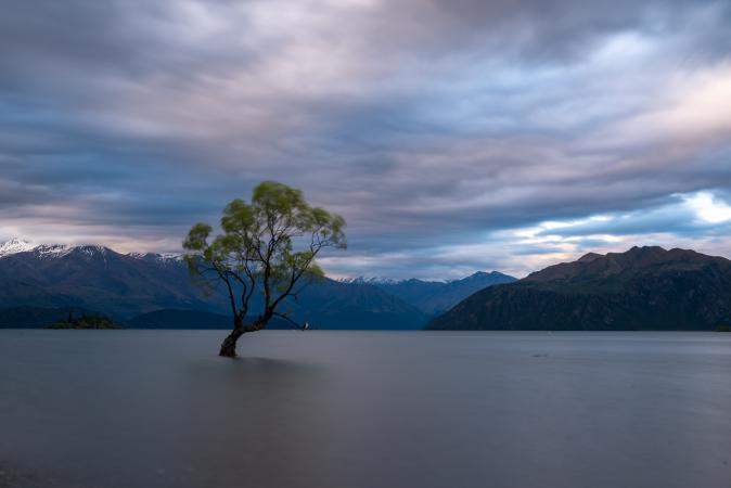 On arrive à Wanaka à 16h45 et on va au camping Hampshire Holiday Park. On laisse le van et on file voir à ¼ d'heure à pied le fameux arbre solitaire les pieds dans le lac qui fait la réputation de Wanaka. On rentre vers 18h00 dîner dans la cuisine commune afin de retourner voir le coucher de soleil.