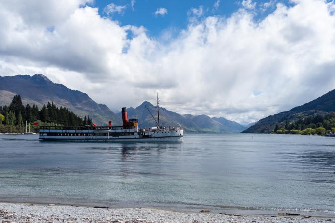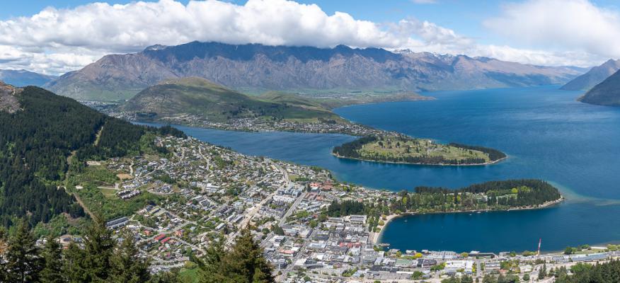 Quelques beaux bâtiments mais pas mis en valeur car des voitures peuvent se garer devant. On déjeune dans un resto, le ''New Orleans Hotel'' car David a vu sur la carte du ''lamb shank'' (souris d'agneau), bon mais pas exceptionnel. On repart à 13h10. Sur la route vers Queenstown, on fait quelques arrêts sur des points de vue. On arrive dans la ''capitale mondiale de l'aventure'' vers 13h30. Queenstown est réputée pour tout un tas de sports à sensation. On part en visite de la ville à pied après s'être installé au camping Creeksyde Holiday Park, qui est à 5 minutes du centre. Pas très loin du camping, on emprunte la Skyline Gondola, des télécabines qui permettent de prendre de la hauteur et d'avoir une vue sympa de la ville et du lac Wakatipu (61€ pour nous deux). Tout est en travaux au sommet, mais on a quand même la vue.