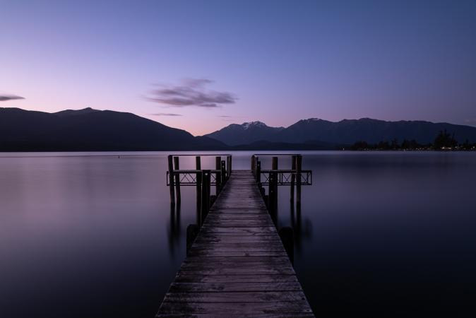 Par contre, avec la montagne enneigée derrière, c'est très beau. On fait encore pas mal de photos en pose longue. On s'en va à 11h30 en direction de Te Anau. On fait une pause déjeuner avec vue sur le lac. En cours de route, notre ''pépère van'' franchit les 200 000 km au compteur ! On arrive à Te Anau à 16h20. On est dans le Fiordland National Park. On s'installe au Lakeview Holiday Park. On va ensuite à pied voir un ''sanctuaire'' des oiseaux, Punanga Manu, à 15 minutes du camping en empruntant le chemin Lakeside Walk en bord du lac Te Anau. Ce sont des volières dans un parc arboré où sont gardés des oiseaux difficiles à voir dans la nature tels que le Takahe,