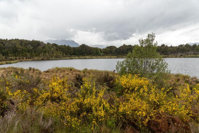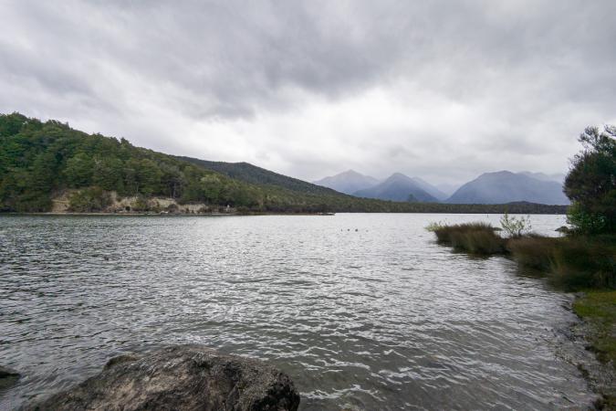On va voir le lac Mistletoe sous quelques gouttes de pluie. Il n'est pas très intéressant.