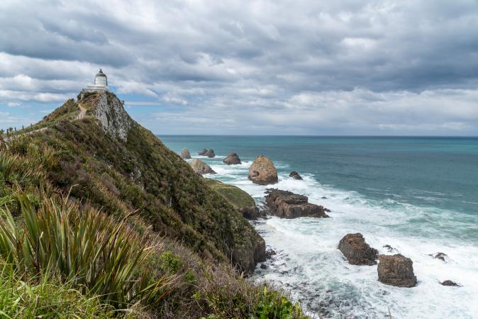 On fait ensuite quelques courses à Owaka en passant car on n'a plus d'eau. On file ensuite à Nugget Point Lighthouse. Petit phare au bout d'une jetée entourée de rochers. C'est très beau.