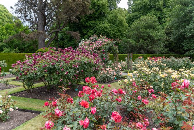 Tout en continuant de suivre l’Avon, on file ensuite vers le Hagley Park. Grand jardin avec des secteurs différents comme le ‘’Rose Sculpture’’. Les roses sont en fleurs, c'est superbe et ça sent bon.