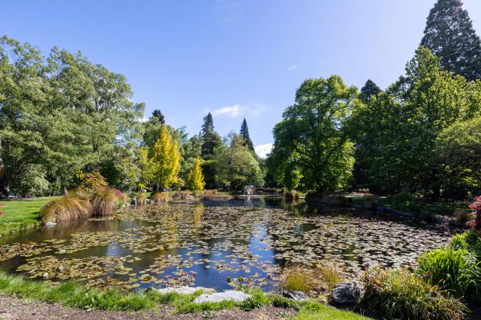 On fait une pause glace ! On pousse jusqu'au Queenstown Garden, grand jardin en plein centre ville. Ils sont forts les néo-zélandais pour cela : d'immense espaces verts dans les villes, fleuris et arborés avec de la place pour le sport (tennis, parcours de frisbee, de vélo...).