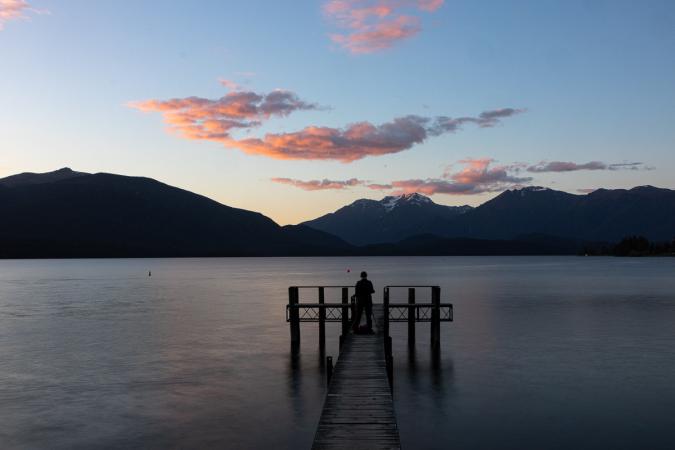 On arrive à Glentanner à 17h20. On installe le van et on va voir le lac à pied.