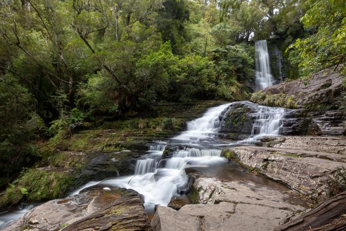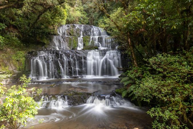 On va ensuite voir une autre cascade : Purakaunui Falls. Plus impressionnante que les deux autres, elle fait plusieurs chutes.