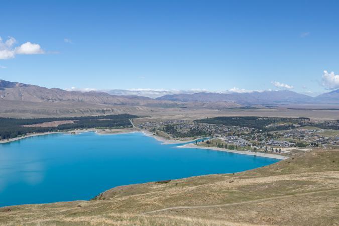 Puis on fait un tour vite fait dans le village. On va ensuite au Mont John. La route mène à un observatoire astronomique et elle est payante, 4€. On grignote avec vue sur le lac Alexandrina. Et on va voir la vue sur le lac Tekapo. C'est assez limité quand même.