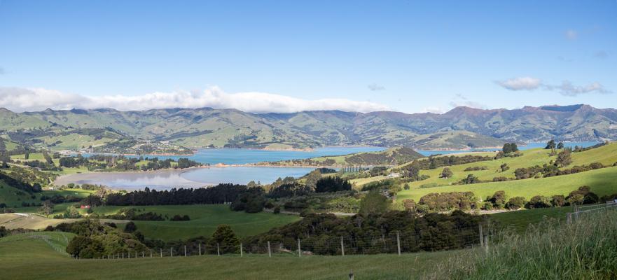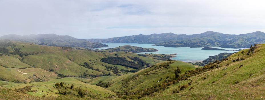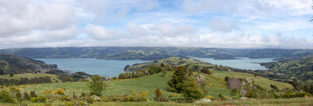 On peut même entrer dedans. Puis on s’arrête à un point de vue depuis Akaroa Heritage Park. La vue est sympa.