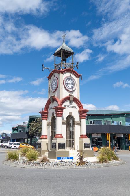 On se croirait dans un décor de Jurassic Park. La vue depuis le Lookout est sympa mais le reste est monotone, on n'a pas beaucoup de vue sur la rivière. On a fait 7,1 km AR en 1h50. On va faire quelques achats souvenirs à la boutique des Pancakes Rocks et on mange une pizza. On repart à 13h15. On passe par Greymouth. On continue jusqu'à Hokitika. On arrive à 14h30. Petite balade dans la ville