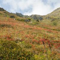 The descent from the Peak to the Cabane de Conques is magnificent with its green meadows and blueberry trees.