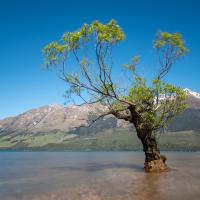 La ville de Wanaka ne parle probablement pas à grand monde. Pourtant, un arbre (et un seul) a fait sa renommée internationale et a certainement contribué, en partie, au développement du tourisme dans cette ville. Elle est en effet devenue célèbre grâce à un arbre solitaire planté dans le lac Wanaka, au milieu de l'eau (il arrive à certains moments qu'il ait le tronc au sec !). Aux plus belles heures de la journée (lever et coucher de soleil), ce saule un peu courbé, pose devant les Alpes du Sud. Un conseil pour les photographes : il vaut mieux arriver longtemps avant le lever et surtout le coucher de soleil pour avoir la meilleure place car vous ne serez pas seuls.