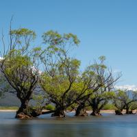 Moins connu que l'arbre solitaire de Wanaka, Glenorchy abrite une rangée d'arbres aux troncs posés dans le lac Wakatipu. Avec les montagnes en second plan, c'est très photogénique.