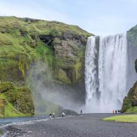 High waterfall in the village of Skogar. You can see it from below, but there is a path that leads to the top of this cascade. The rise, however, does not bring much if not the view around.