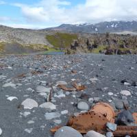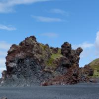 Black pebble beach very beautiful with its ancient lava flows covered with moss. On this beach, we find pieces of scrap metal. A sign at the entrance to the beach indicates that this is the wreck of an old trawler failed in 1947. Ideal place for a picnic break.