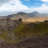 Beautiful field of old lava covered with vegetation, magnified by the colors of autumn. By taking the 558 Berserkjahraun track, if your car allows it, you will reach the heart of this lava field. It is possible to take a little height by taking a path along a crater.