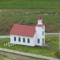Small church visible from far thanks to its red roof near Hellissandur. Contrary to many other churches in Iceland, this one was closed at the time of our passage.