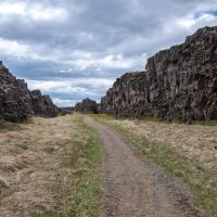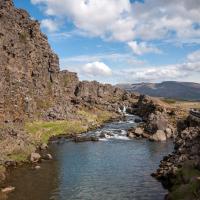 Lava fiels protected by two large cliffs. This is the meeting place of two tectonic plates: the american plate and european plate. A ballad allows to see the cliffs, the site of the Chamber (where the first parliament met - World Heritage of Unesco), the cascade Oxararfoss, the chapel and Lake Thingvallavatn.