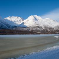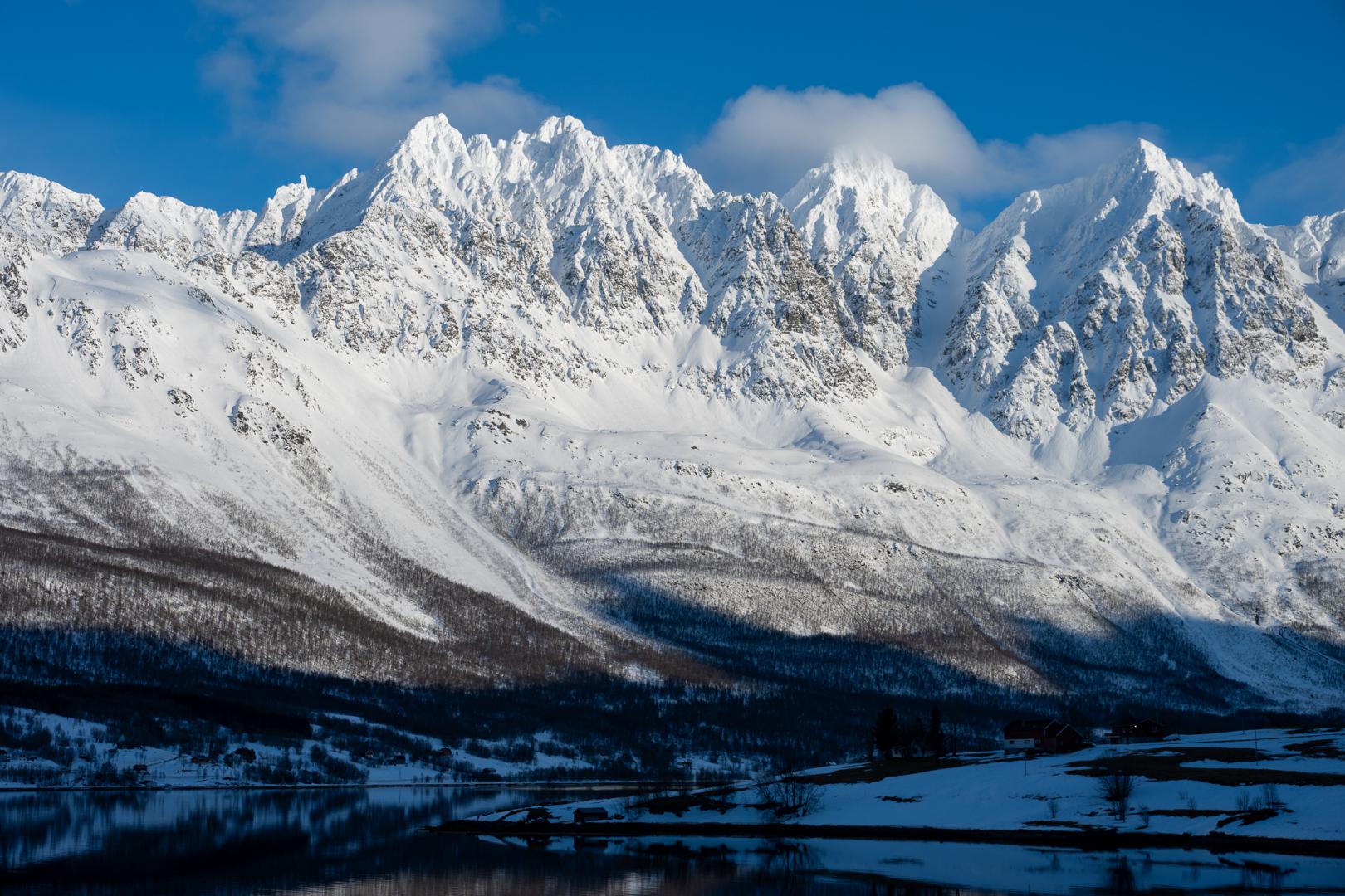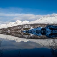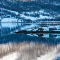 Just 1 hour from Tromso lies Sjovassbotn, the start of the Ullsfjorden fjord. We saw some very beautiful scenery here: ice debacle, small lake with “its vapors”, pretty red houses on the edge of the fjord.