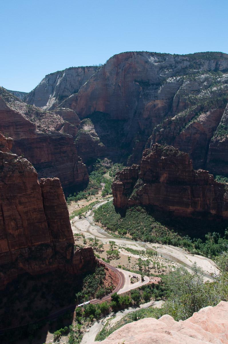 Une fois redescendus, nous grignotons à l’ombre sur les tables de pique-nique et allons ensuite manger une bonne glace près du Zion Lodge. Sur la route du retour, nous nous arrêtons visiter la galerie photos de Mickael Fataly puis le Trading Post de Virgin.
