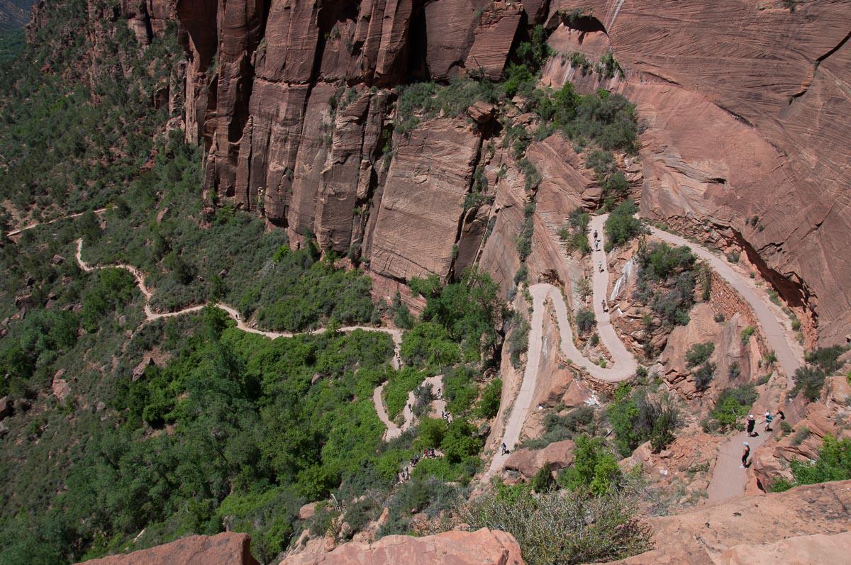Dimanche 10 juin : c'est parti pour la randonnée Angel’s Landing vers 8h50. Il fait encore frais 18°. Nous montons à l’ombre. Oui, parce que ça grimpe raide : 300 m de dénivelé.