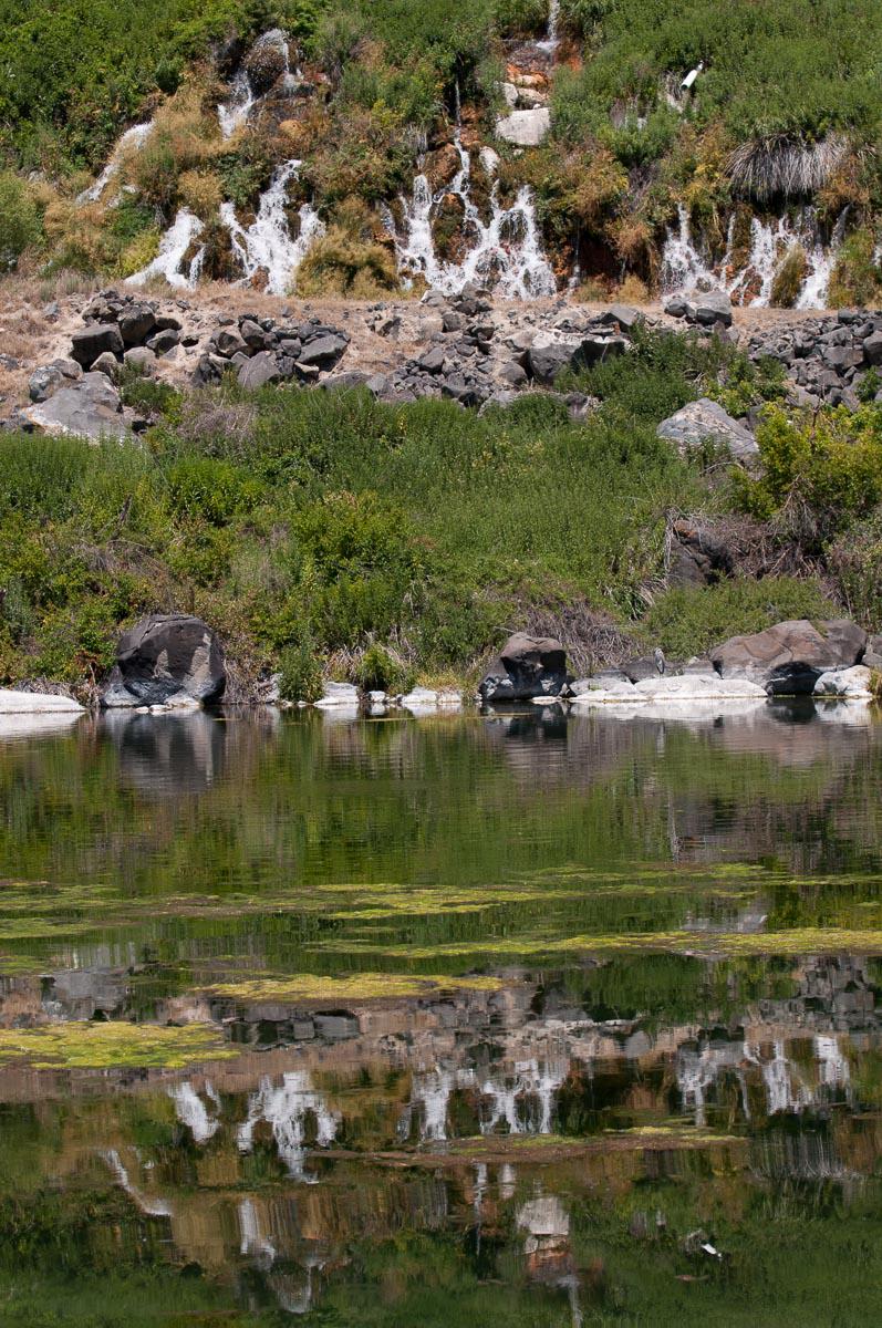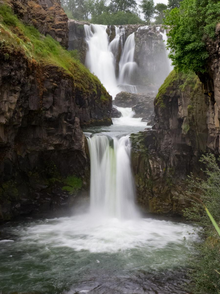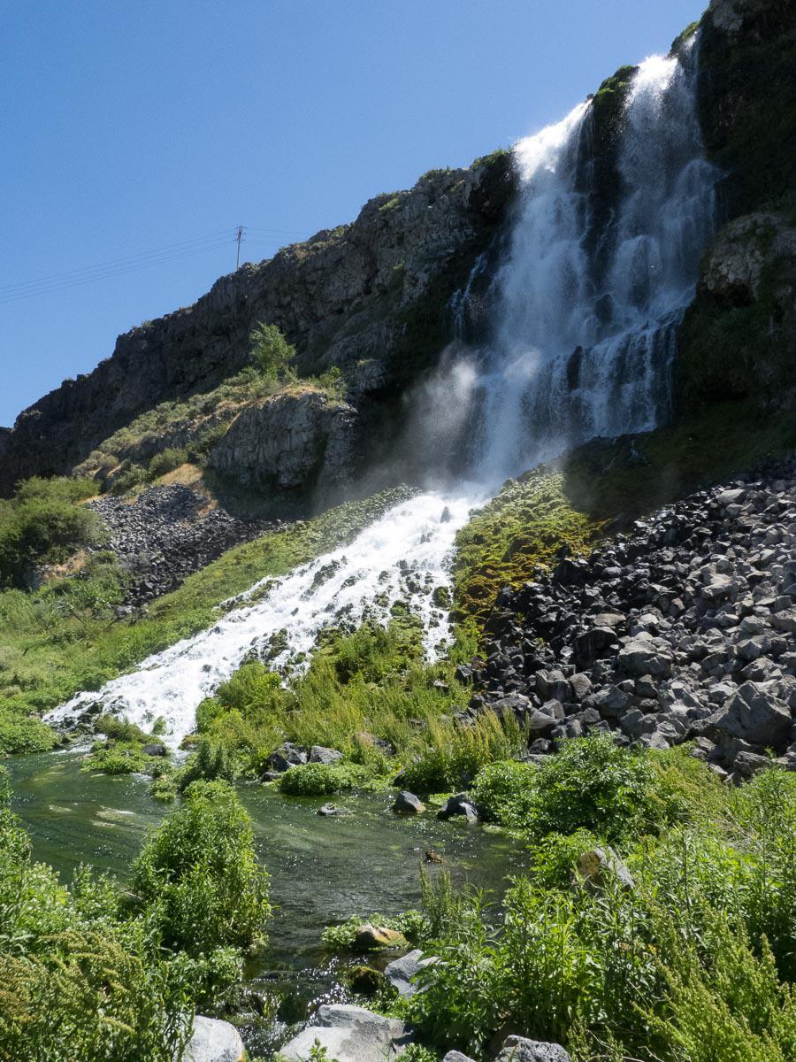 Mercredi 20 juin : dans ce coin de l'Idaho, il y a un endroit qui s'appelle Thousand Spring et qui comprend plusieurs sites avec des cascades. Après des tours et recherches… nous arrivons à Ritter Island pour se rendre compte que la grille donnant accès au site est fermée. La seule cascade accessible est à contre jour