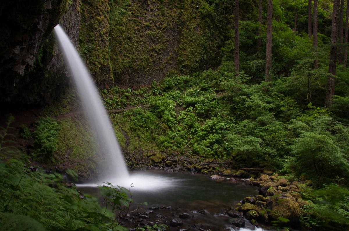 Vu le temps pourri, nous décidons d'aller acheter du vin d'Oregon à ramener en France. Nous allons à The Dalles dans une grande surface. Il fait 12°, il tombe des cordes, c'est tout gris, brumeux. Déprimant ! En sortant du Safeway, le ciel est dégagé par endroits. Nous profitons de l'éclaircie pour aller à Multnomah (sortie 31 de la I84). C'est plein de monde (en même temps, on est samedi). C'est chouette mais pas facile pour faire des photos en pause longue.