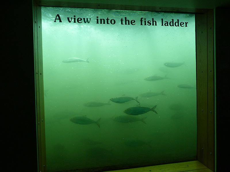 A 16h45, nous allons au Bonneville Dam (le bâtiment ferme à 17h) voir les échelles à saumons. L’entrée est contrôlée par un gardien qui regarde dans notre coffre si nous n'avons pas d’arme. Puis nous nous dirigeons vers le Visitors Center d’où nous avons une vue sur ces échelles : vue sous l’eau et vue extérieure. C’est impressionnant, il y a plein de saumons...