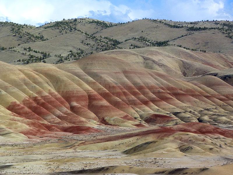 En milieu d'après midi, nous filons vers Painted Hills à 9 miles d’ici. Nous commencons par l’Overlook Trail (1,2 miles). Il s’agit du chemin le plus touristique qui donne une vue d’ensemble sur les dunes oranges et rouges.