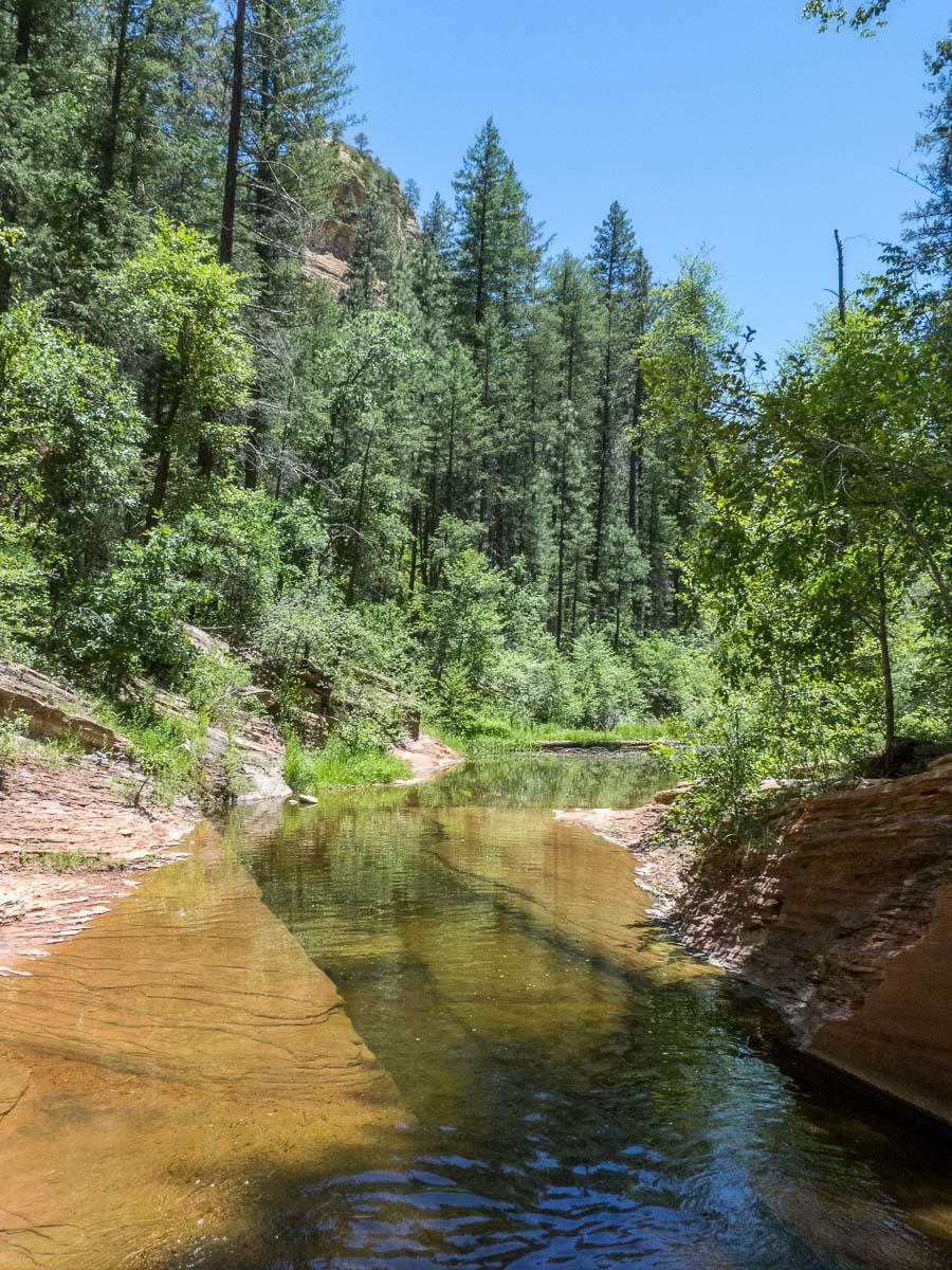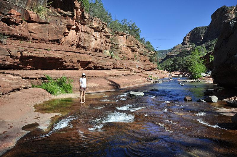 C’est très rafraîchissant avec une brise de vent agréable. En milieu d'après midi, nous allons à Slide Rock State Park, toujours sur la 89A (20$ le parking). C’est très touristique donc il y a plein de monde. Nous nous éloignons un peu et trouvons un coin plus tranquille pour faire trempette…