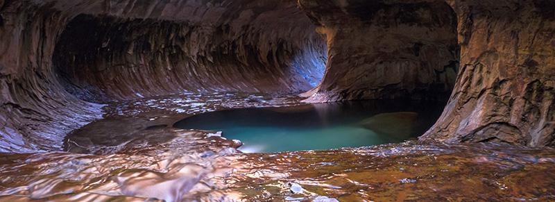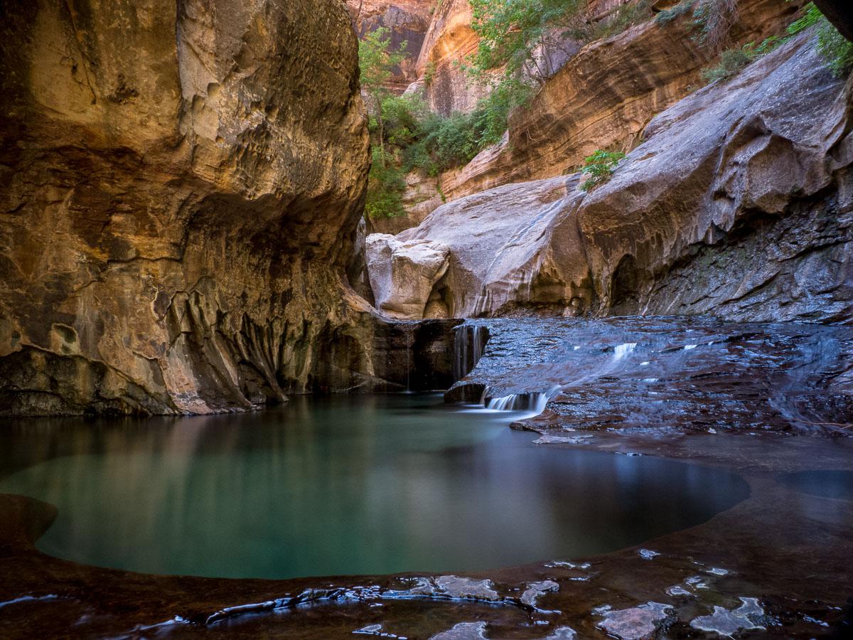 Lundi 11 juin : nous nous rendons au parking de Left Fork of North Creek pour commencer la descente vers Subway tôt (6h30). Il fait frais : 12°. Nous arrivons au Subway vers 8h30, à la bonne heure pour la lumière sur les pools. C'est magnifique.