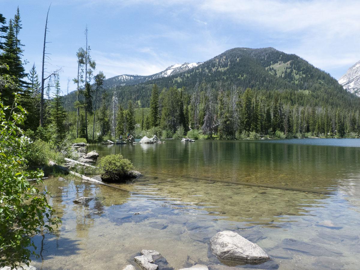 Dimanche 17 juin : départ pour la randonnée d’Inspiration Point qui longe le Jenny Lake puis passe par Hidden Falls, 10 kms AR.