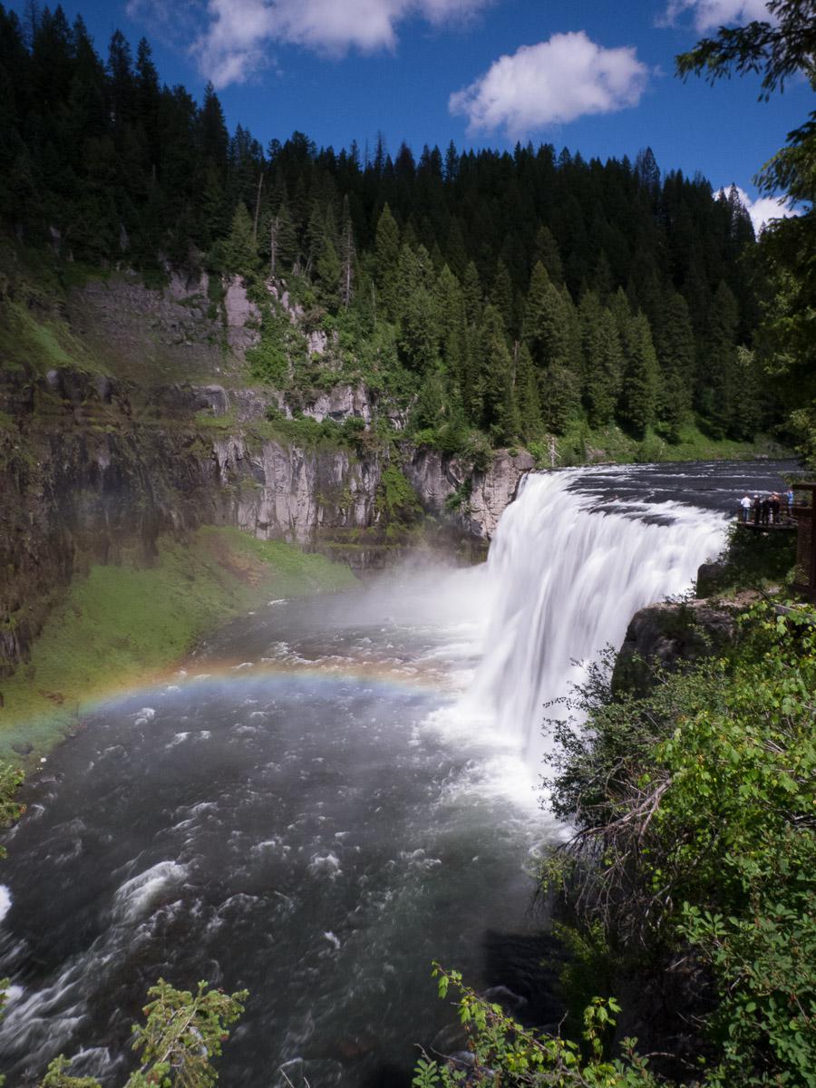 Mardi 19 juin : nous reprenons la route pour Mesa Falls. Il faut prendre la Mesa Falls Scenic Byway, c’est 14 miles après l’intersection. Il faut commencer par le Upper (5$ l’entrée, gratuit avec l’annual pass). Upper Mesa est très jolie surtout le matin car il y a un arc en ciel.