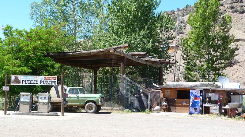 Nous faisons un tour dans le village très « old west » : vieux bâtiments en bois, station service à l’ancienne…