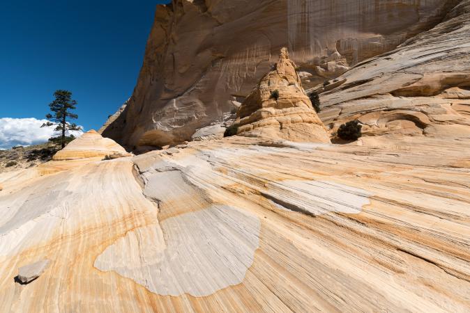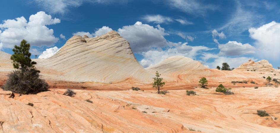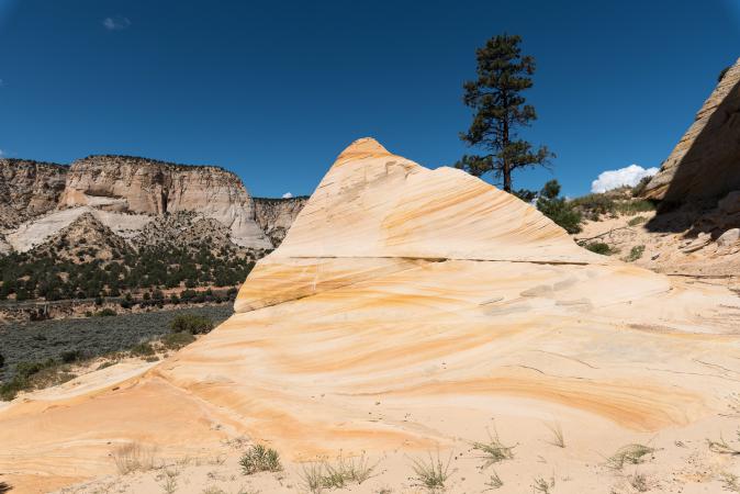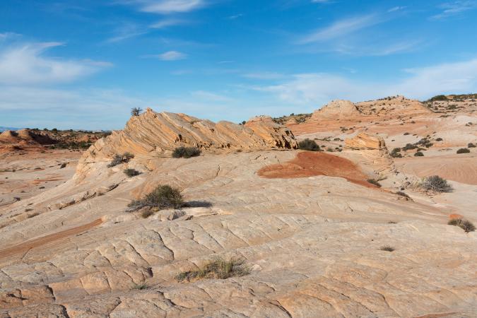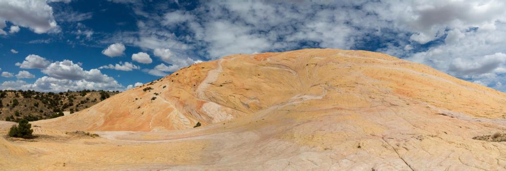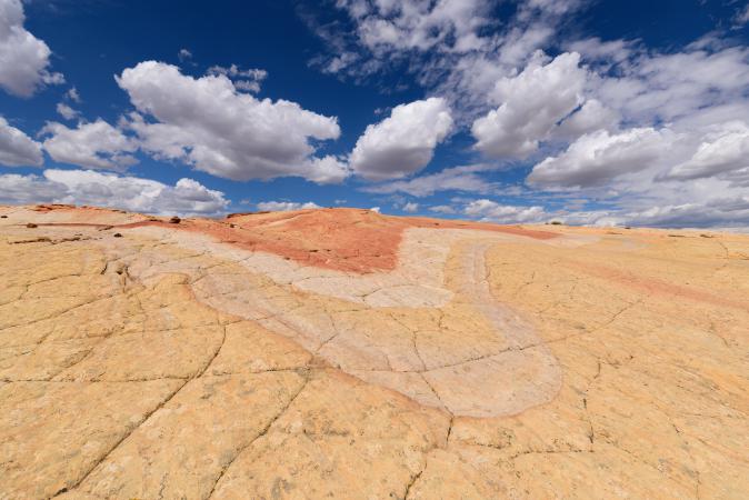 Wednesday, September 13 : at breakfast, it is already good. We take the Cottonwood Canyon Road to the Yellow Rock car park. We start the hike. The start is done in sand and a wash, then we attack a big steep climb. Then it's slickrock. Yellow Rock is beautiful, all in nuance of colors - yellow, orange, white.