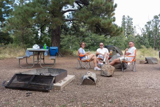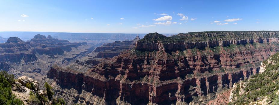 Friday, September 15 : we normally had a permit for Paw Hole today but given the condition of the tracks, we do not venture there. We do not call Eric! We are changing the program and we are heading towards the north shore of the Grand Canyon. We arrive around 11:00 am by a pretty road lined with fir trees, aspens already yellow, meadows. There it is 55° F but we are 8 825 feet above sea level. We start with Bright Angel Point. The parking is full. We admire the view, we tour the lodge and then picnic.
