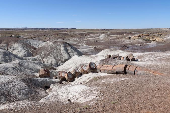 We do not stop at Agate Bridge to go directly to Jasper Forest. There is a great plain with pieces of petrified wood, blah. On the other side of the road, there is a large petrified tree trunk in very good condition. We continue to Crystal Forest and walk on the 0,7 mile loop which brings together a large concentration of petrified trunks. This is the best part of the park.