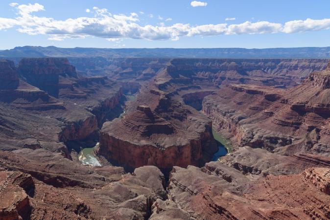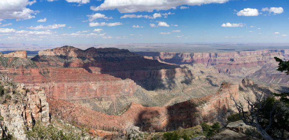 At 1:30 pm, we take the direction of Point Imperial, which is more beautiful than the other. The shadow of the clouds is projected on the canyon, it is superb.