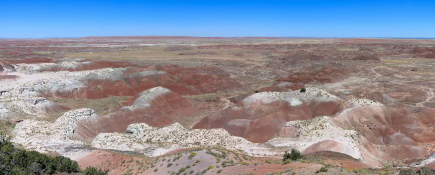 Thursday, September 21 : breakfast in peace! Departure at 9:00 am to Painted Desert and Petrified Forest. We arrive at 11:40 am (AZ time) at the Visitors Center of Painted Desert. We make a tour of the viewpoints : Tiponi Point (nil), Tawa Point (nil), Kachina Point and the National Historic Landmark (medium), Chinde Point (nil), Pintado Point (nil), Nizhoni Point (medium), Whipple (no stop), Lacey Point (nil).