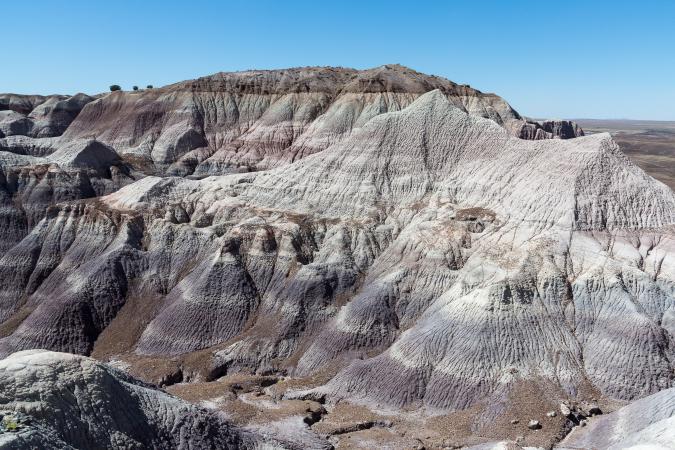 We cross Route 66 to Petrified Forest. We stop first at Puerco Pueblo, well preserved ruins, then at Newspaper Rock where we can see petroglyphs, the viewpoint The Tepees ... not found. We arrive at Blue Mesa. We take the time to walk the Blue Mesa Trail, loop of 1 mile. It is not at all at the right time - it is 2:00 pm, the light is not beautiful and the colors do not stand out.
