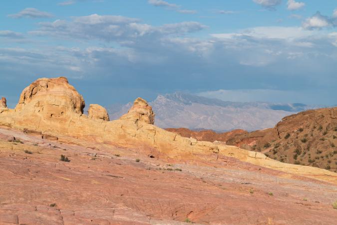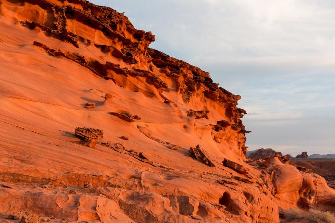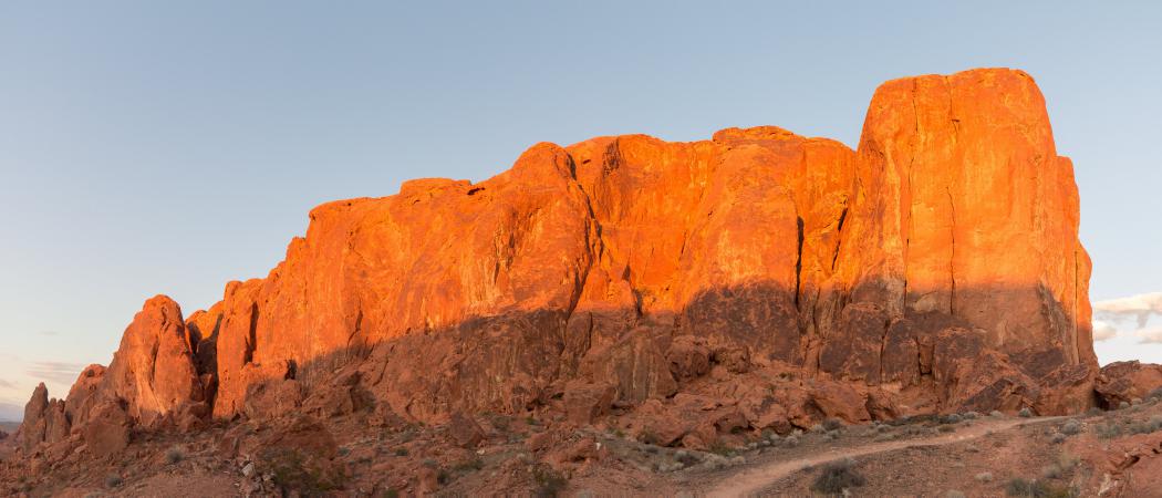 Finally, we continue to Fire Wave that illuminate with the colors of the sunset. On the way back to the parking, we pass in front of Gibraltar Rock which becomes orange with the last rays of sun.