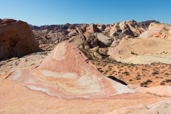 The GPS unit helps us a lot because it is very paumatory. We hide bottles again and we point the location on the GPS unit to be sure to find them. We do a lot of breaks and poses ... photos. At the end of the trail, it's sandy. At the end of the last climb, it turns right and suddenly ... the White Domes are just there, visible at the last moment at the turn of this turn. We breathe a sigh of relief, we are there, we succeeded! It is 2:00 pm. We need 5 hours to walk the 5,6 miles and the 1 800 feet of elevation by going there quietly. We drop the bags and rest a bit before going to explore the area. Everyone then leaves to discover the place. I really appreciate this moment alone. It's quiet, calm. It's beautiful, magical.