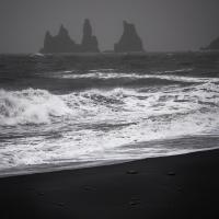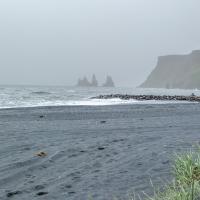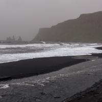 This city on Highway 1, is one of the wettest places in Iceland. We can confirm, as the weather was execrable when we went there. A lot of wind and rain. A walk on the beach of black sand is needed, however, reinforcing the impression that we had to live in a black and white world.