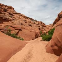 Waterholes Canyon se compose de deux sections différentes : un slot canyon (partie basse) et un "mur" en forme de vague qui rappelle The Wave : Great Wall (partie haute). Ce site est très peu fréquenté.