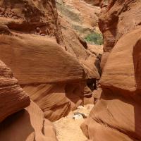Accès : depuis le barrage de Glen Canyon, prendre la route 89 vers le sud. Au mile marker 542 et juste avant le pont sur la 89, il y a un parking sur la gauche qui indique l'entrée de Waterholes Canyon.