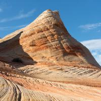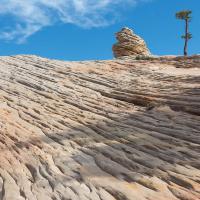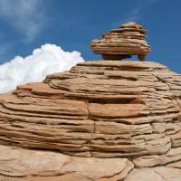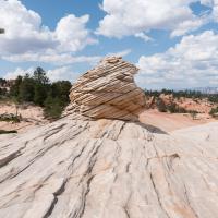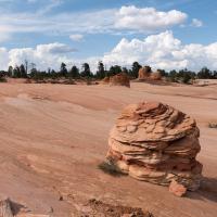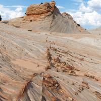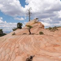 La randonnée fait 18 kms aller retour via Squirrel Canyon avec un dénivelé d'environ 550m. Le début commence assez fort par une descente puis une remontée dans du sable mou. Puis il faut traverser un wash, Short Creek, et le longer sur environ 1,5 kms avant de le traverser à nouveau vers la gauche pour s'engager sur Squirrel Creek. A partir de là, ça monte tranquillement en sous-bois jusqu'à une montée raide mais relativement courte (100m) dans une "coulée" de caillasses. Et enfin, on marche sur du slickrock où ça monte assez raide et où le GPS est bien utile car il n'y a aucun chemin. La toute dernière partie du chemin se fait dans du sable. Nous sommes montés en 5h en y allant tranquillement et en faisant beaucoup de pauses et poses... photos, et picnic (temps de marche 3h30) ! Descente en 2h30.